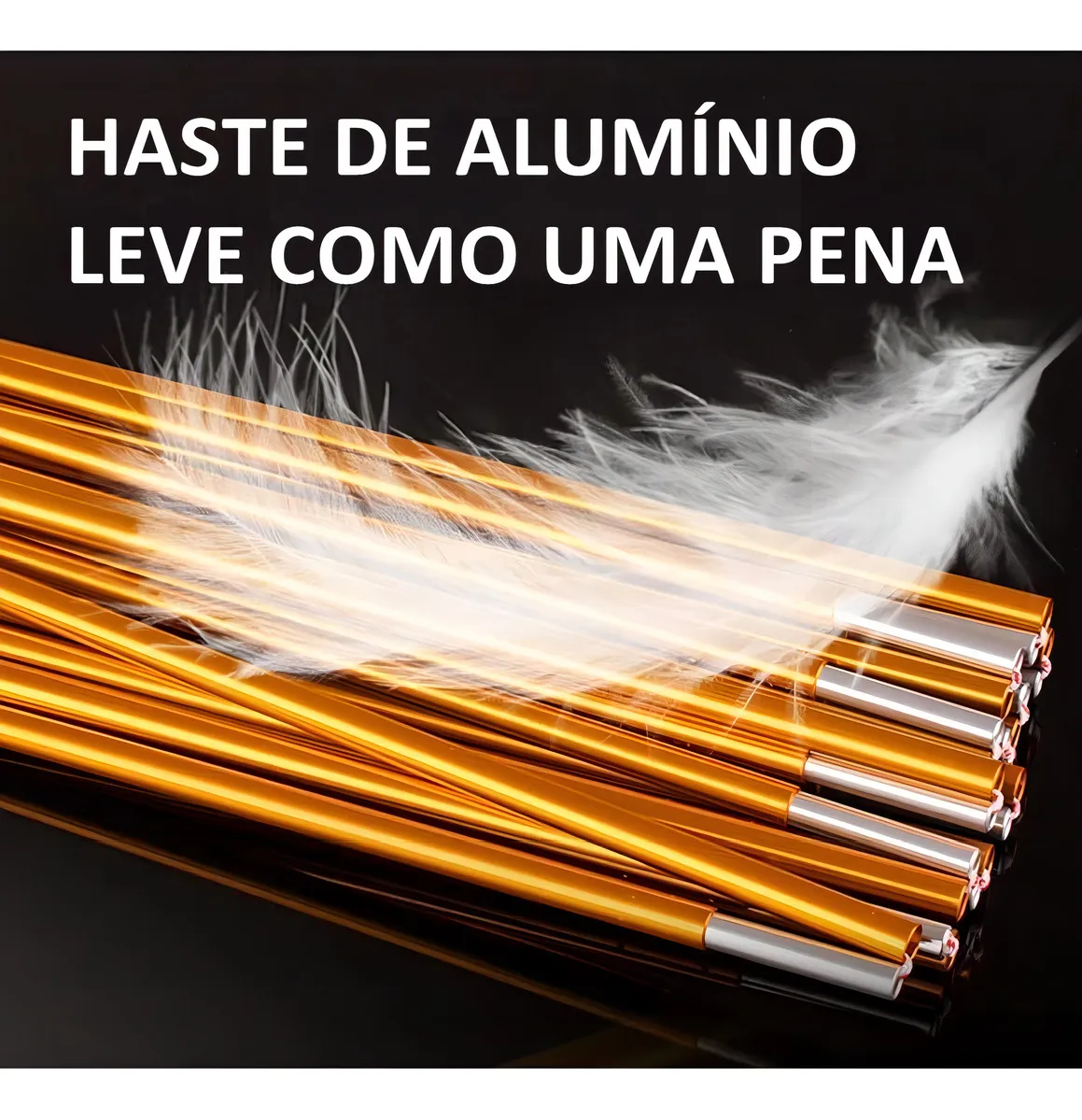 Barraca resistente e impermeável, ideal para aventuras ao ar livre. Fabricada com materiais de alta qualidade, proporciona conforto e proteção contra as intempéries. Sua estrutura inclui suporte de alumínio de aviação para maior firmeza.
